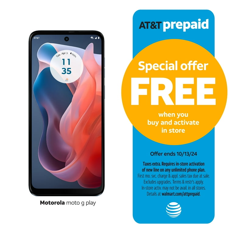 AT&T Motorola G Play 2023, 32GB, Navy Blue - Prepaid Smartphone ...