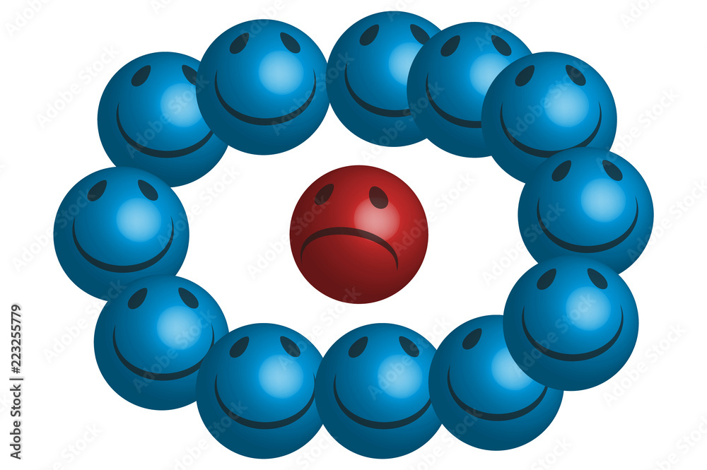 Depresión y soledad frente a gente feliz. Stock Vector | Adobe Stock