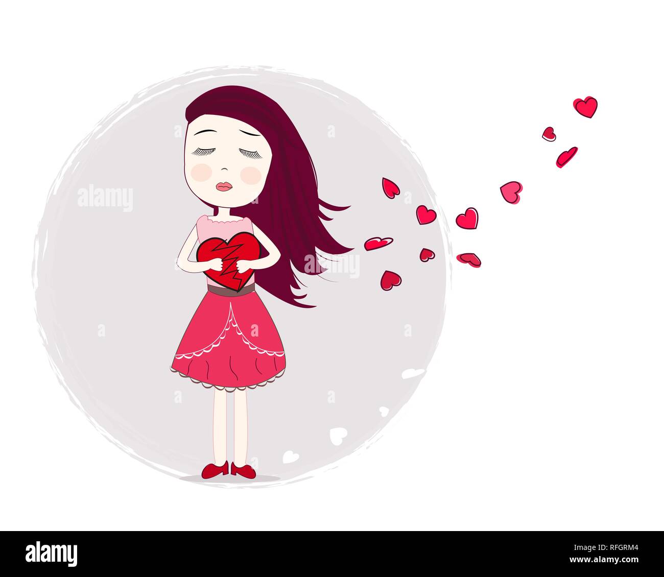Celebración corazón tristeza chica. Soledad chica. Feliz día de San Valentín tarjeta de felicitación Imagen Vector de stock - Alamy