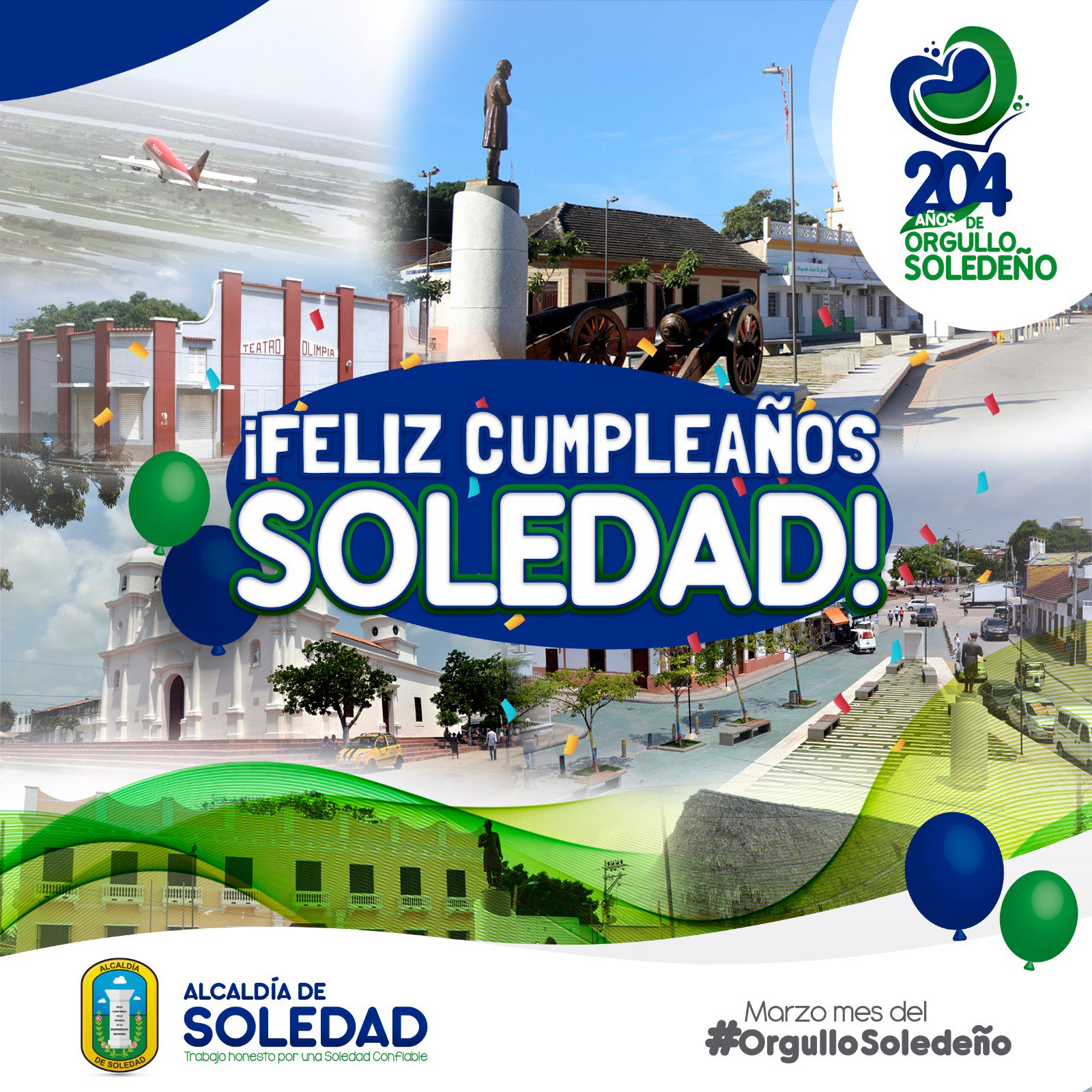 Alcaldía de Soledad on X: "¡Feliz cumpleaños Soledad! Hoy celebramos 204 años de historia. Somos tierra de tradición y cuna del folclor, somos #OrgulloSoledeño https://t.co/VvaGza0ENp" / X