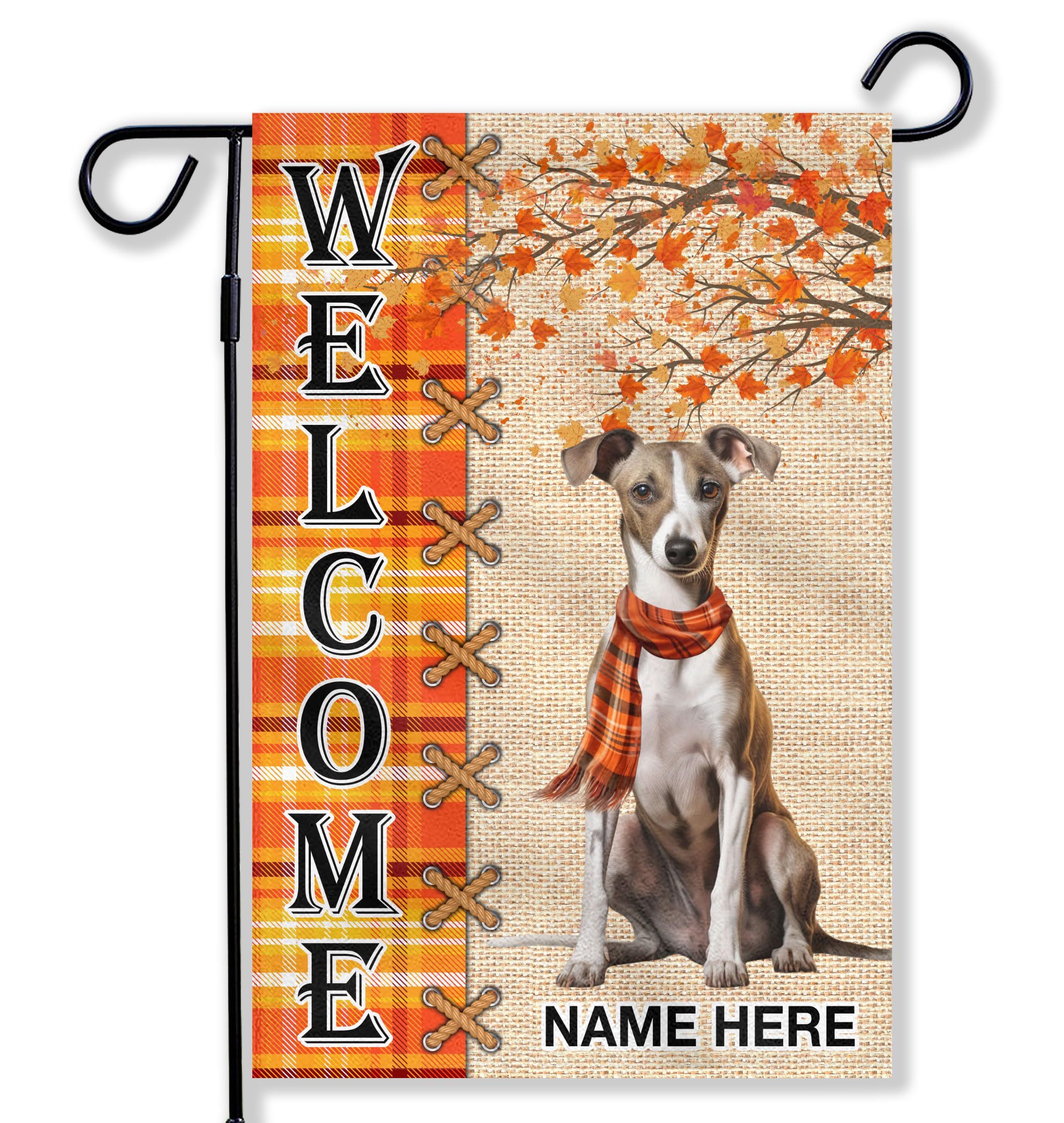 Amazon.com: Padovo Bandera de jardín de galgos italiana personalizada vertical de doble cara con hojas de otoño, bufanda de bienvenida para perro, bandera de casa personalizada, nombre de familia, árbol de otoño,