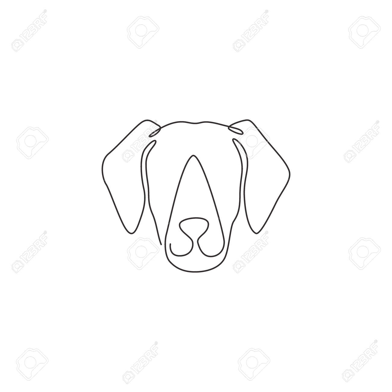 Dibujo De Una Sola Línea Continua De La Linda Cabeza De Perro Labrador Retriever Para La Identidad. Concepto De Mascota De Perro De Pura Raza Para Icono De Mascota Amigable Con Pedigrí.