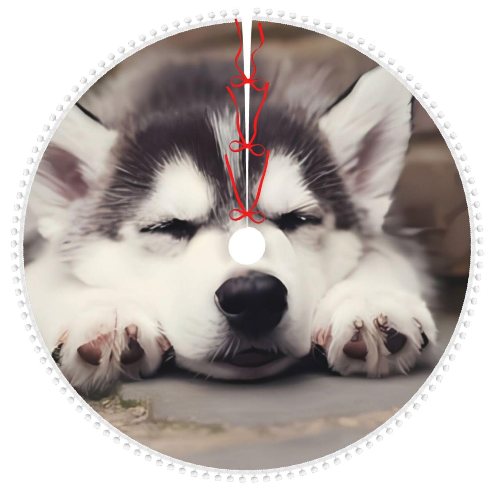 Amazon.com: Husky Dog Christmas Tree Skirt with Pom Pom Trim Waterproof Xmas Tree Skirt Tree Mat for Holiday Party Halloween Christmas Decorations 36" : Home & Kitchen