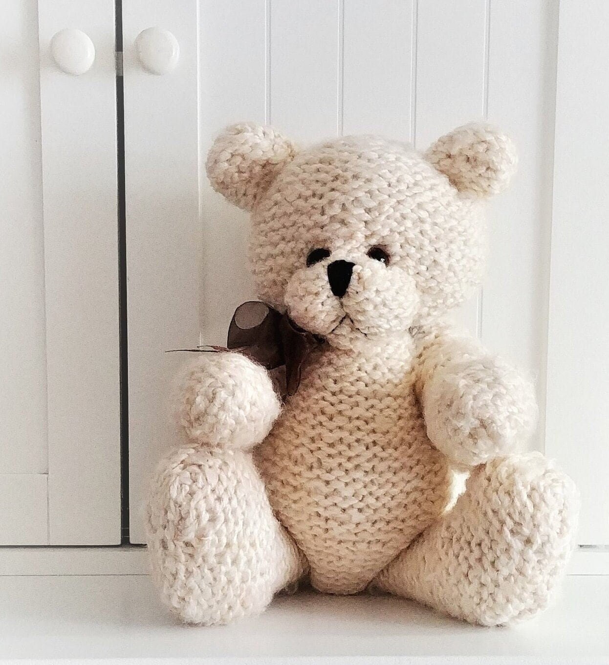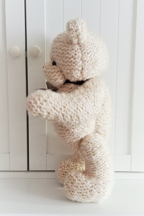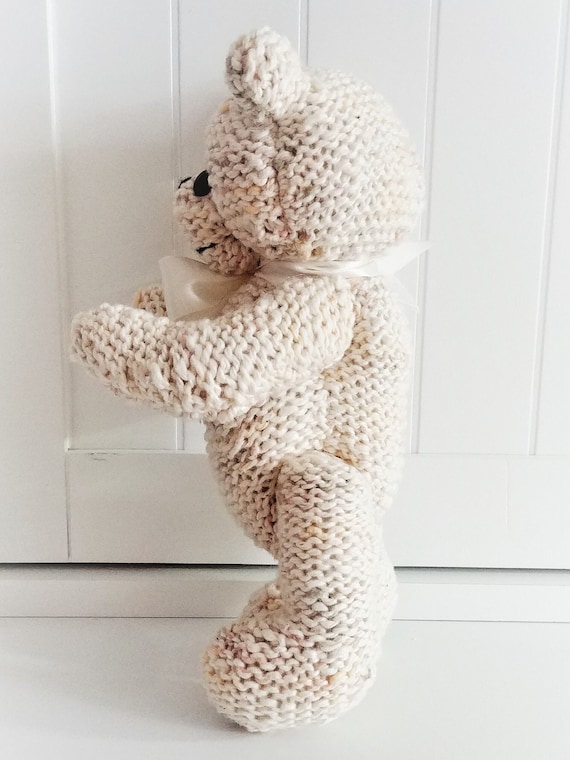 Oso de peluche en marfil, oso articulado tejido a mano con cinta transparente marrón, regalo de baby shower, oso acurrucado - Etsy México