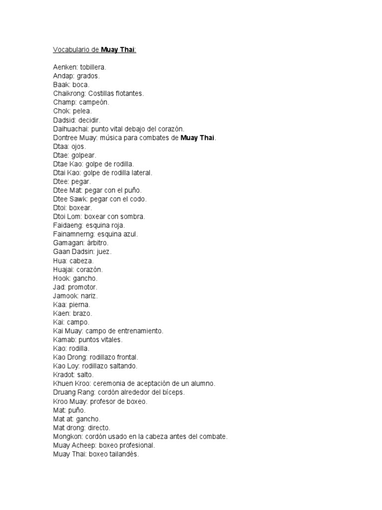 Vocabulario de Muay Thai | PDF