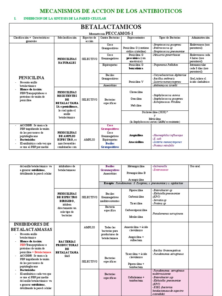 Tabla de antibioticos 352864 downloable 1651734 2 - RESUMEN DE ANTIBIOTICOS INHIBE CLASIFICACIÓN - Studocu