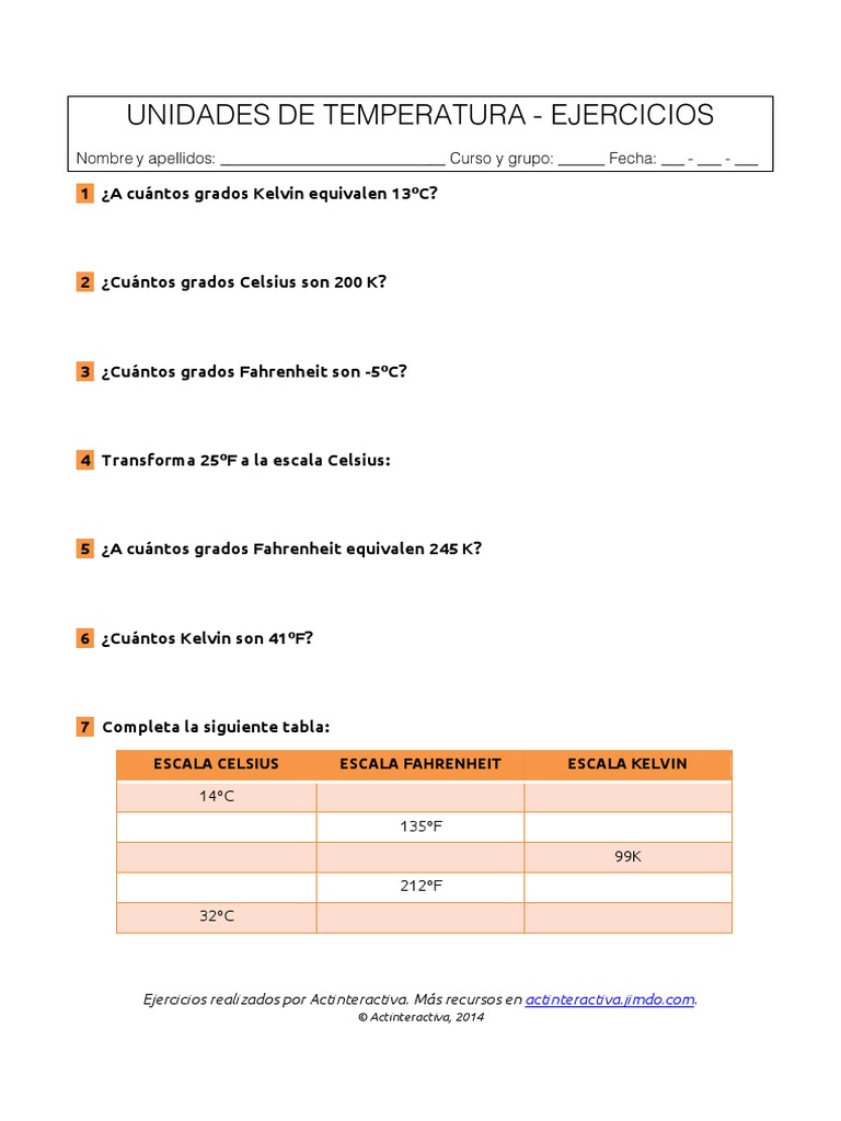 Ejercicios de Unidades de Temperatura - Actinteractiva PDF | PDF