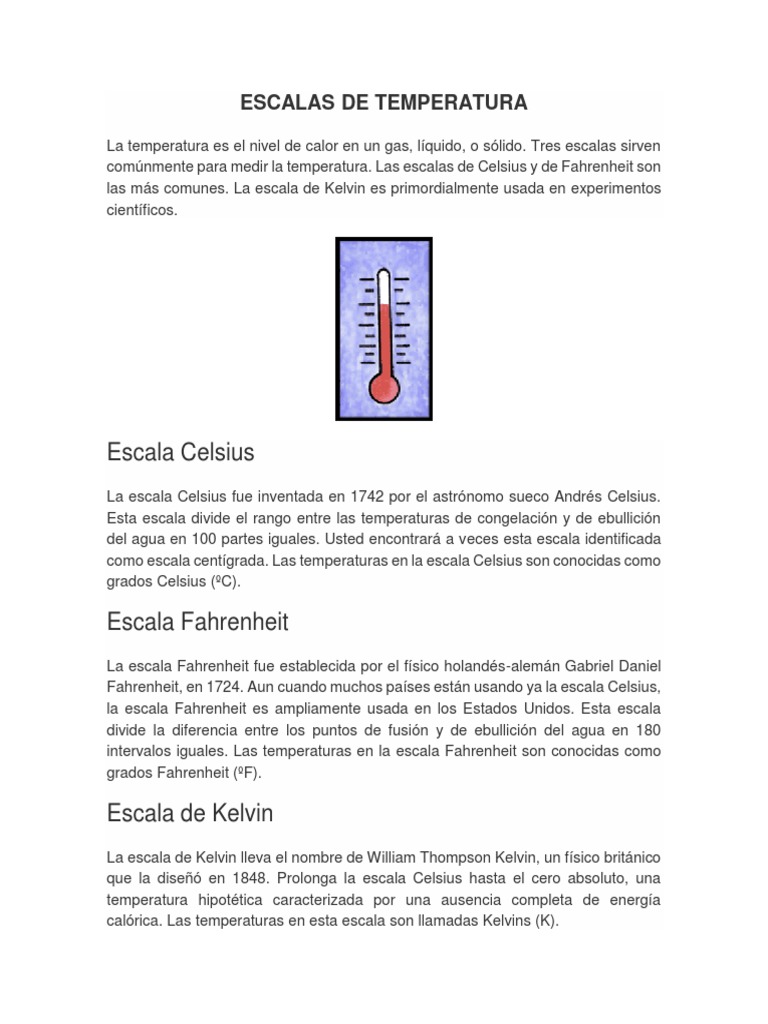 Tabla de escalas de celcius fahrenheit y kelvin - Brainly.lat