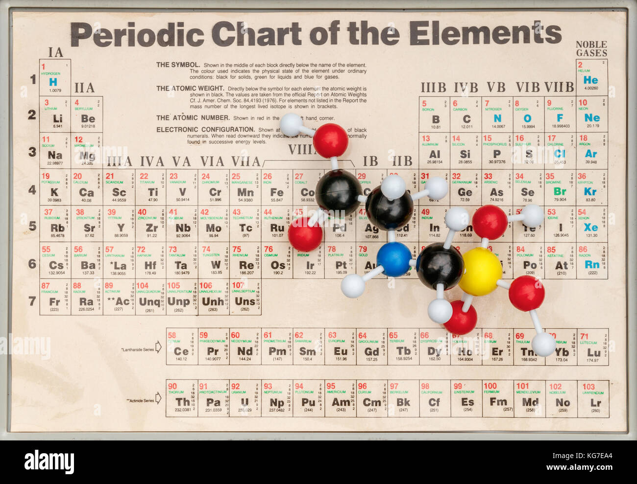 Modelo de bola y palo de plástico de dos moléculas de formaldehído (fórmula química CH2O) con la tabla periódica de elementos como fondo Fotografía de stock - Alamy