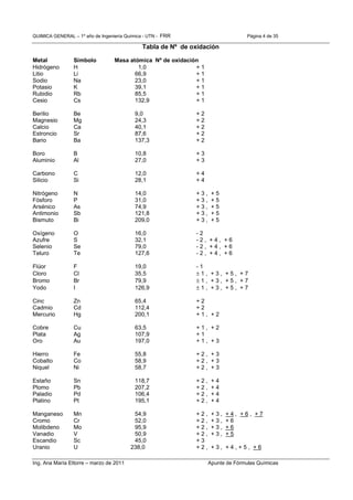 Tabla valencias elementos quimicos |