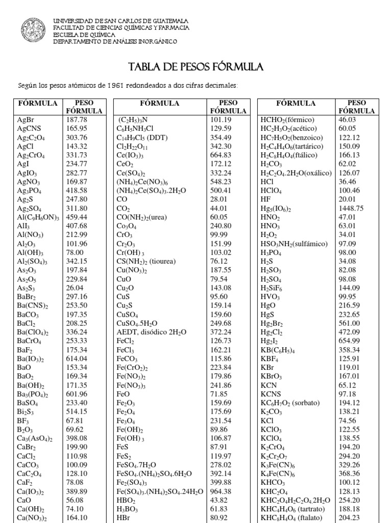 TABLA DE PESOS FÓRMULA | PDF