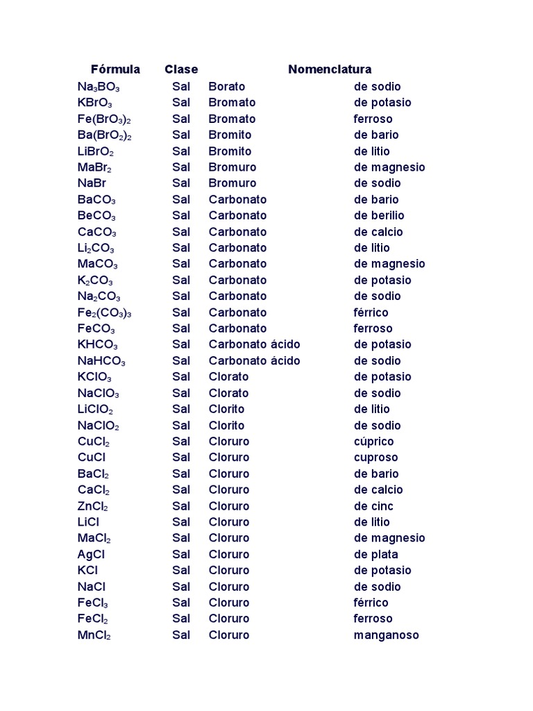 Listado de Sales | PDF | Sulfato | Sal (química)