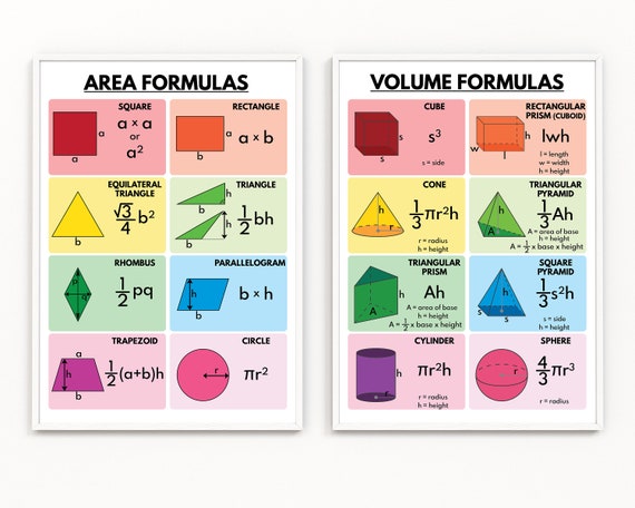 FÓRMULAS DE ÁREA Y VOLUMEN, Geometría, Formas geométricas, Carteles educativos, Decoración de pared del aula de matemáticas, Imprimible, descarga digital - Etsy México