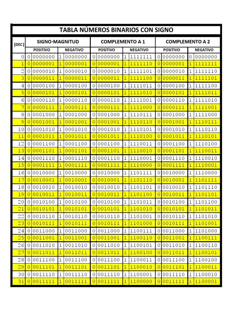 Tabla Para Realizar Fácilmente Resta De Números Binarios. - Electropreguntas