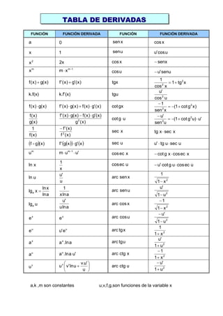 Fórmulas Básicas de Integración y derivadas de funciones trigonométricas - Tabla de Integrales - Studocu