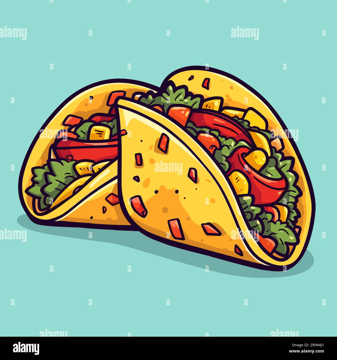 Cartoon Tacos with Meat with Vegetables Vector Illustration Mexican Traditional Food. Isolated on White Background Stock Vector - Illustration of icon, isolated: 243044875