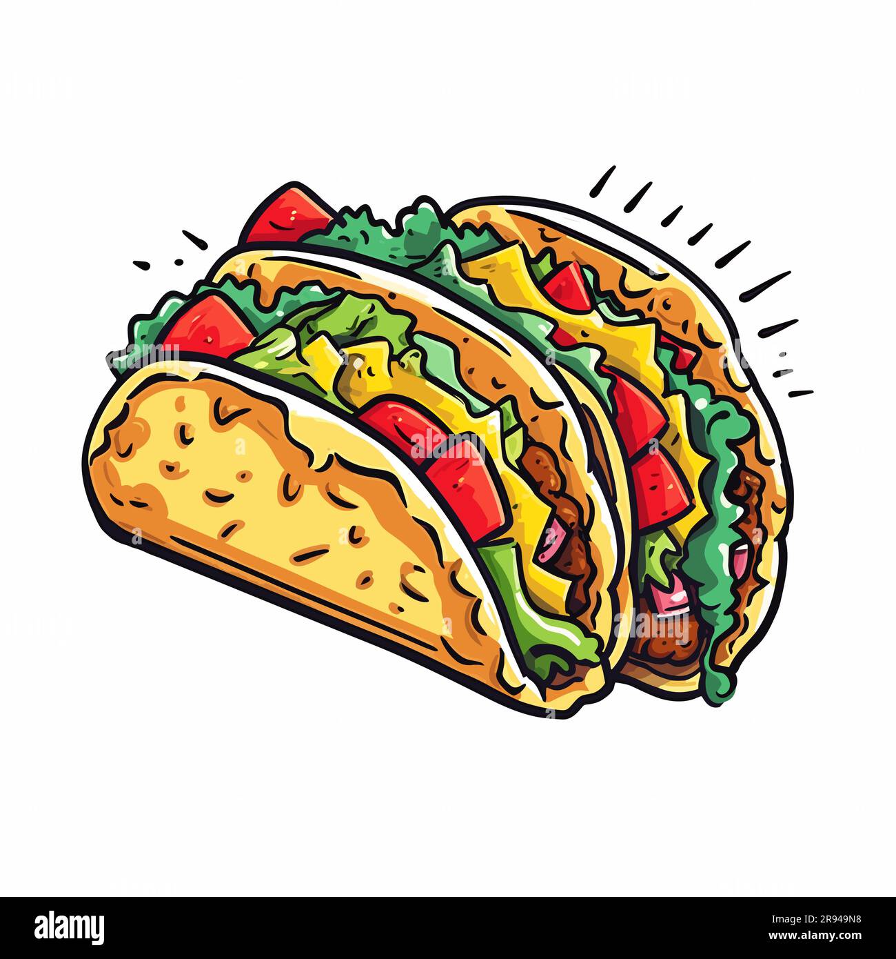 Deliciosa ilustración de dibujos animados de tacos mexicanos aislada en fondo blanco. Carne de res, tomate, queso, cebolla, lechuga, ingredientes para tortillas de maíz. 5949374 Vector en Vecteezy