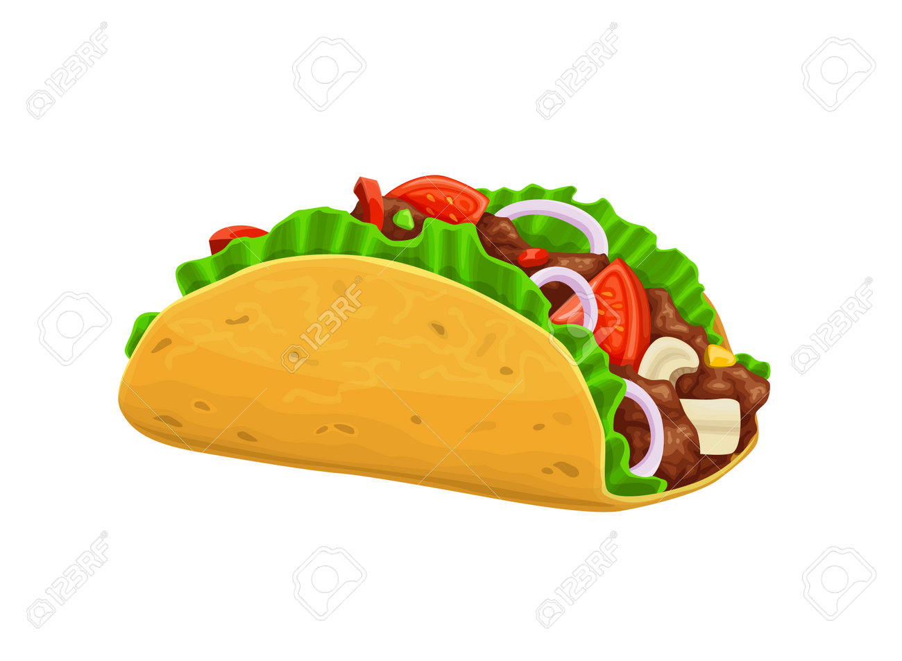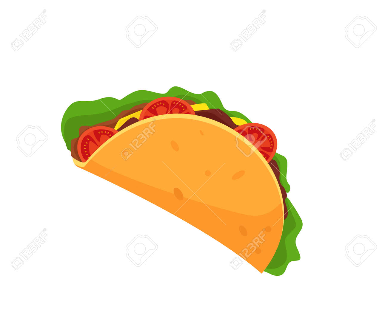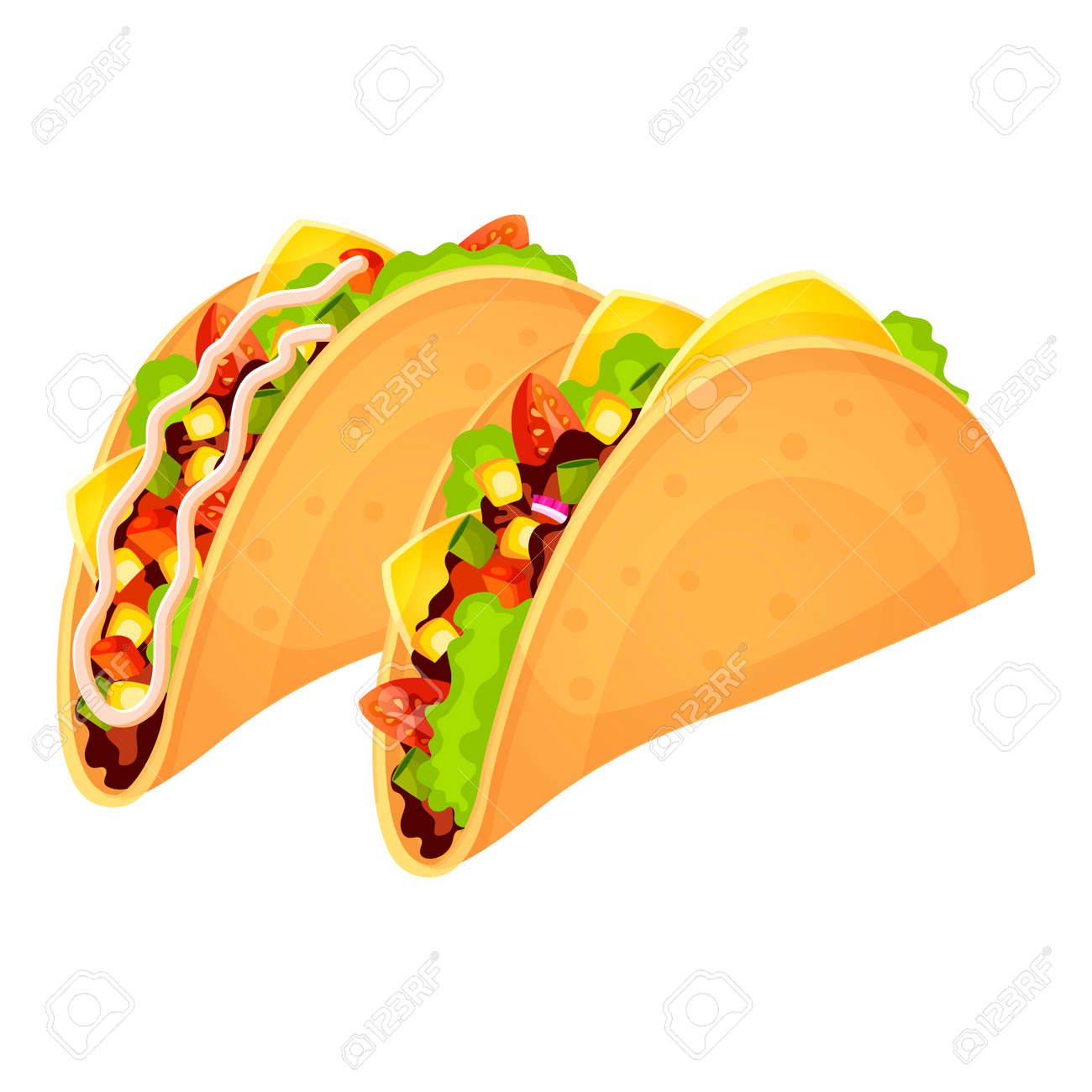 Traditional Mexican Tacos With Meat And Vegetables And Cheese Isolated On A White Background Cartoon Vector Illustration Royalty Free SVG, Cliparts, Vectors, and Stock Illustration. Image 188629513.