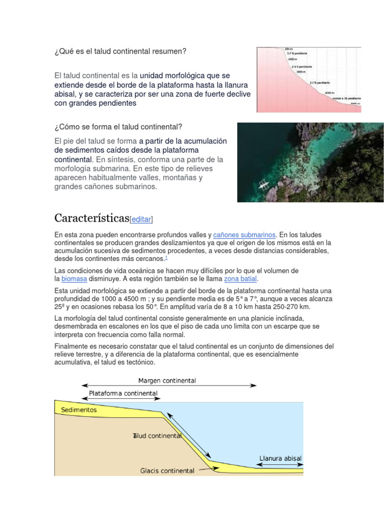 Qué es el talud continental resumen | PDF