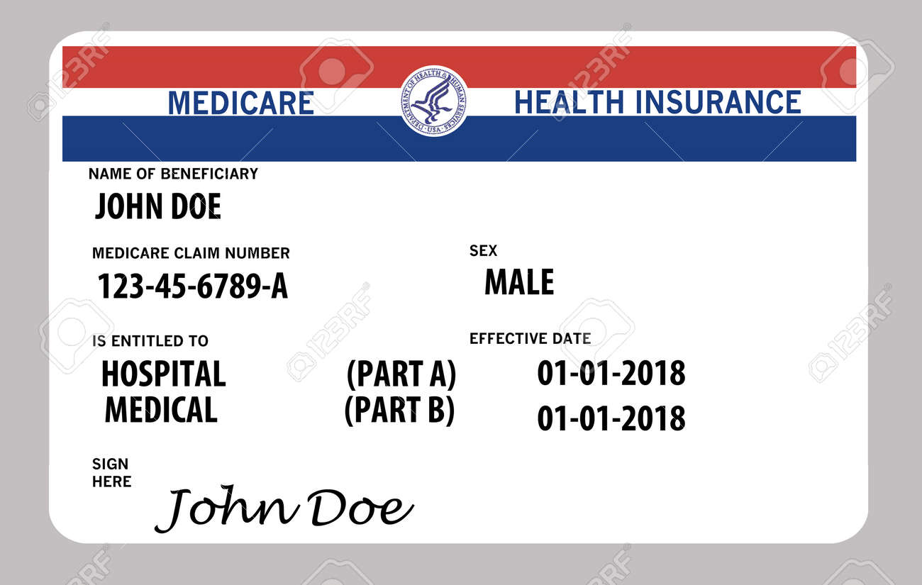Esta Ilustración Es Una Tarjeta De Seguro De Salud Medicare Genérica Y Simulada Del Gobierno De EE. UU. Aislado En El Fondo. Fotos, retratos, imágenes y fotografía de archivo libres de derecho.