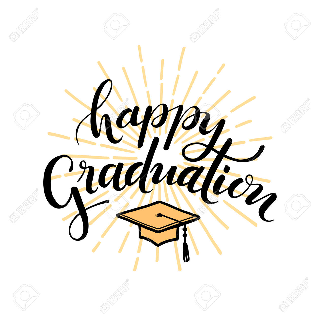 Feliz Graduacion. Dibujado A Mano Letras Para Saludar, Tarjeta De Invitación Ilustraciones svg, vectoriales, clip art vectorizado libre de derechos. Image 76468984