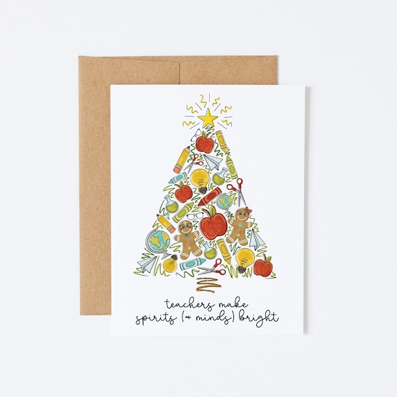 Tarjeta de Navidad para maestros Los maestros hacen que los espíritus mentes brillen Tarjeta navideña para maestros, Tarjeta para asistente de enseñanza, Tarjeta para tutor - Etsy España