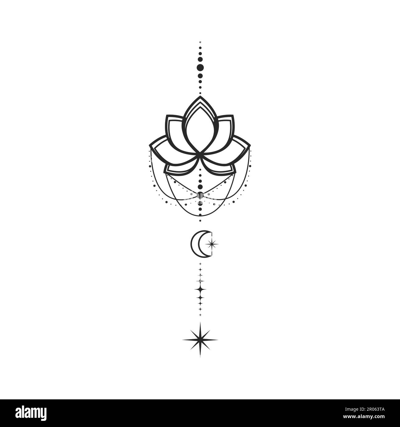Flor de loto luna y estrellas línea art elemento aislado. Composición abstracta de la constelación, tatuaje de diseño gráfico Imagen Vector de stock - Alamy