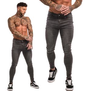 GINGTTO-pantalones vaqueros elásticos para hombre, Vaqueros ajustados de cintura para hombre, pantalones con diseño rasgado, ropa de calle, Vaqueros azules para hombre 2020 - homo.cat