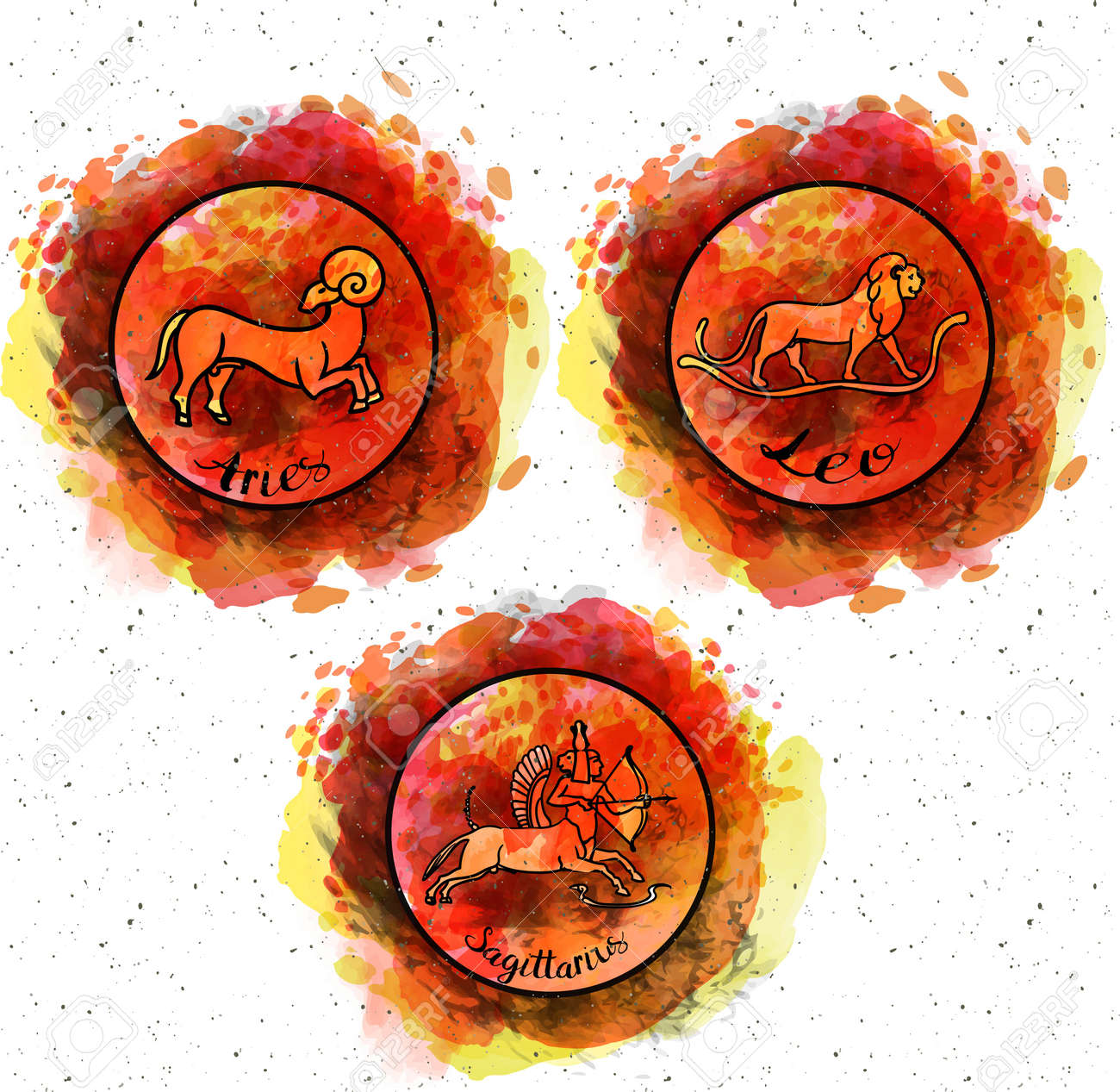Conjunto Del Elemento Fuego Del Zodiaco Signs.Watercolor Textura ...