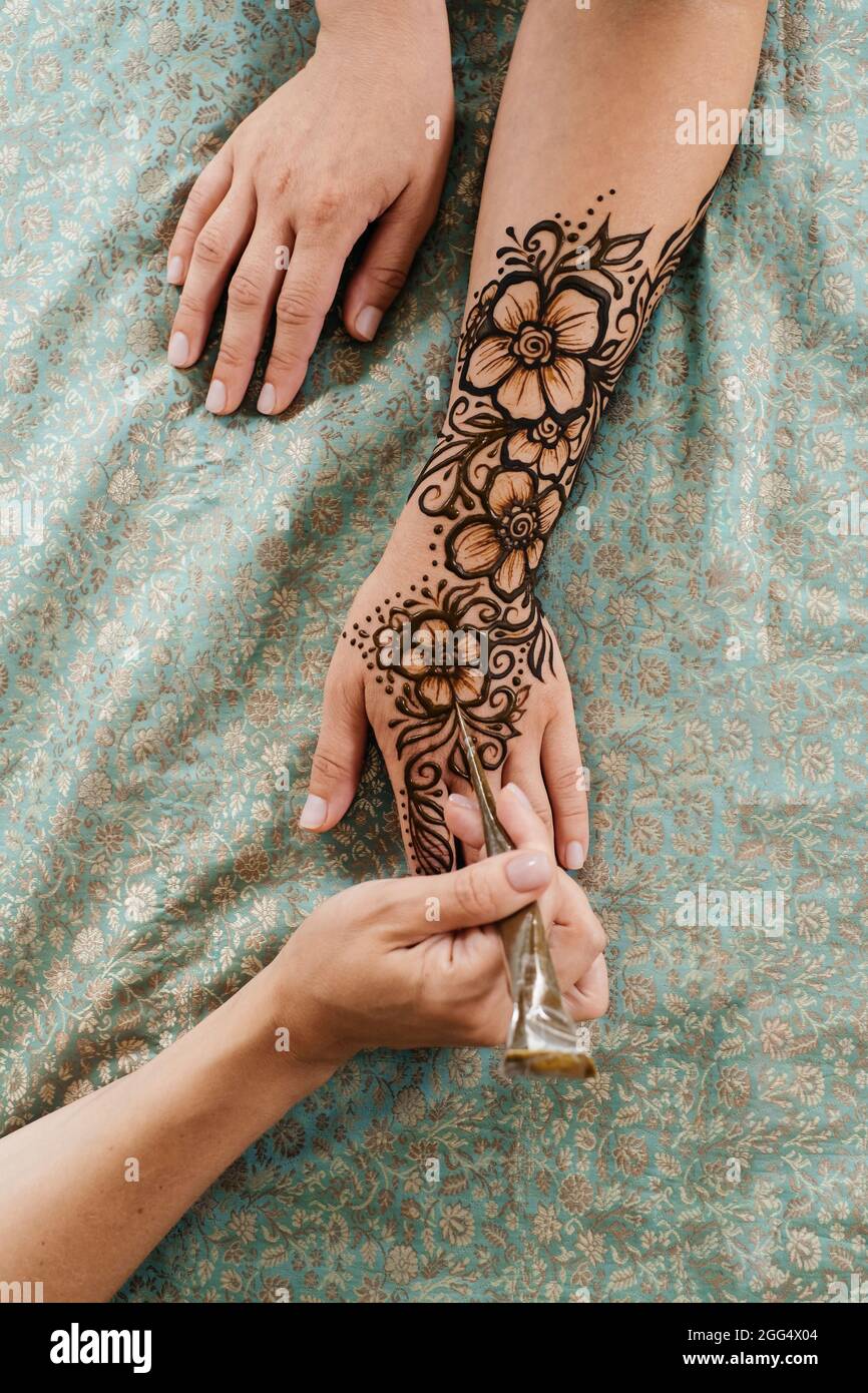 Tatuaje de henna manos fotografías e imágenes de alta resolución - Alamy