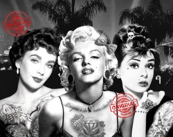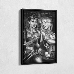Punk Tattoo Marilyn Monroe Print, póster en blanco y negro, enmarcado opcional - Etsy España