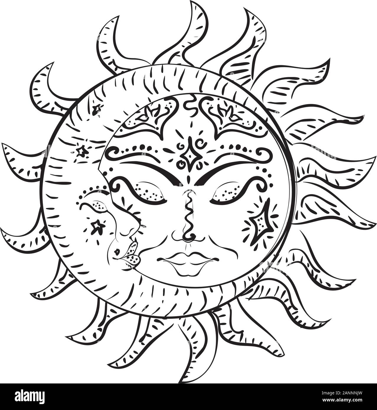 Tatuaje sol y luna Imágenes de stock en blanco y negro - Página 2 - Alamy