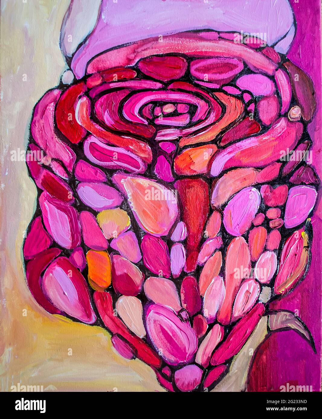 Abstracción acrílica rosa y roja. Técnica de neurografía de flores terapia artística Fotografía de stock - Alamy