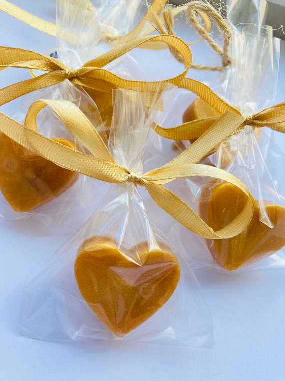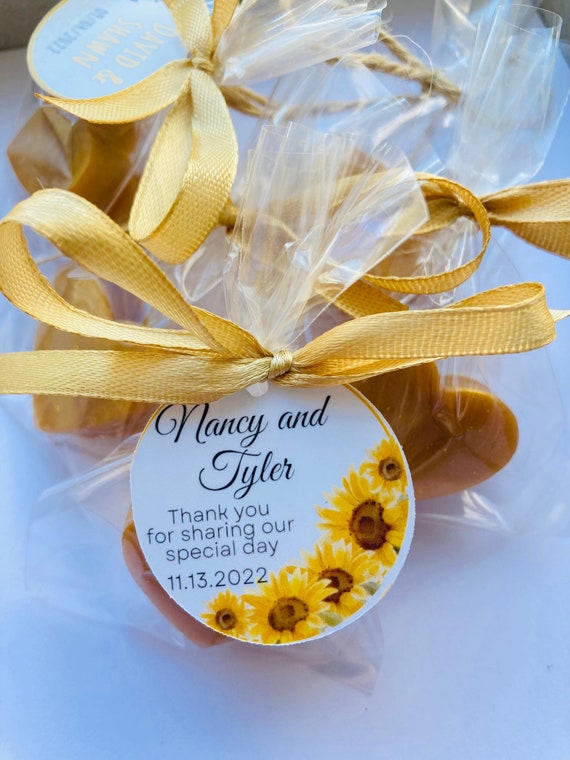 10 piezas de favores de boda de girasol, mini jabones de corazón de oro, favores de baby shower de tema de otoño pequeño, regalos de boda de campo rústico, favores amarillos -