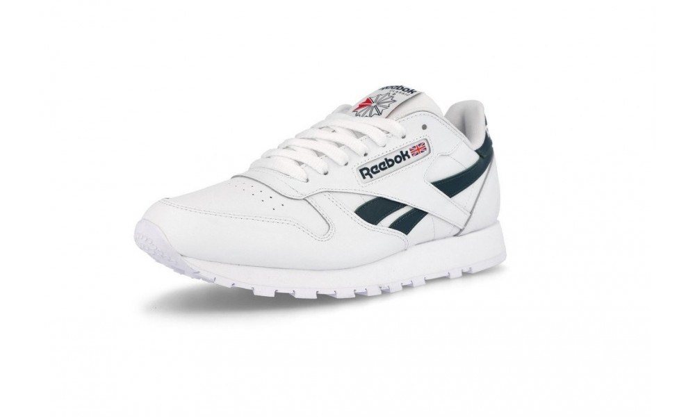Кроссовки Reebok Classic Leather белые/зеленые купить в Москве