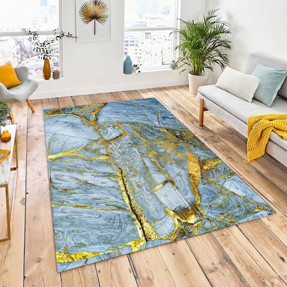 Alfombra con textura de mármol dorado azul, alfombra con estampado de mármol azul y dorado, alfombra moderna antideslizante, para múltiples lugares, azul y dorado, alfombra de dormitorio - Etsy España