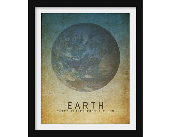 Impresión del arte del planeta tierra, arte de la pared del sistema solar para la habitación espacial o la guardería de los niños, tercer planeta del sol - Etsy España