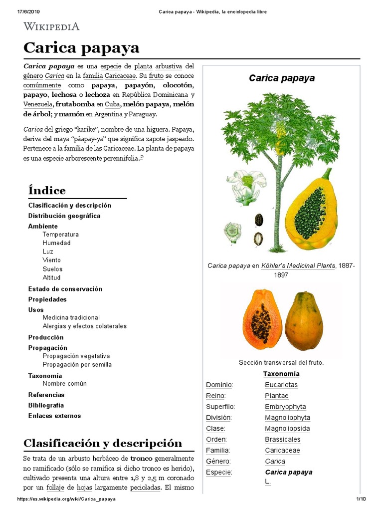 Carica Papaya Wikipedia, La Enciclopedia Libre | PDF | Plantas ...