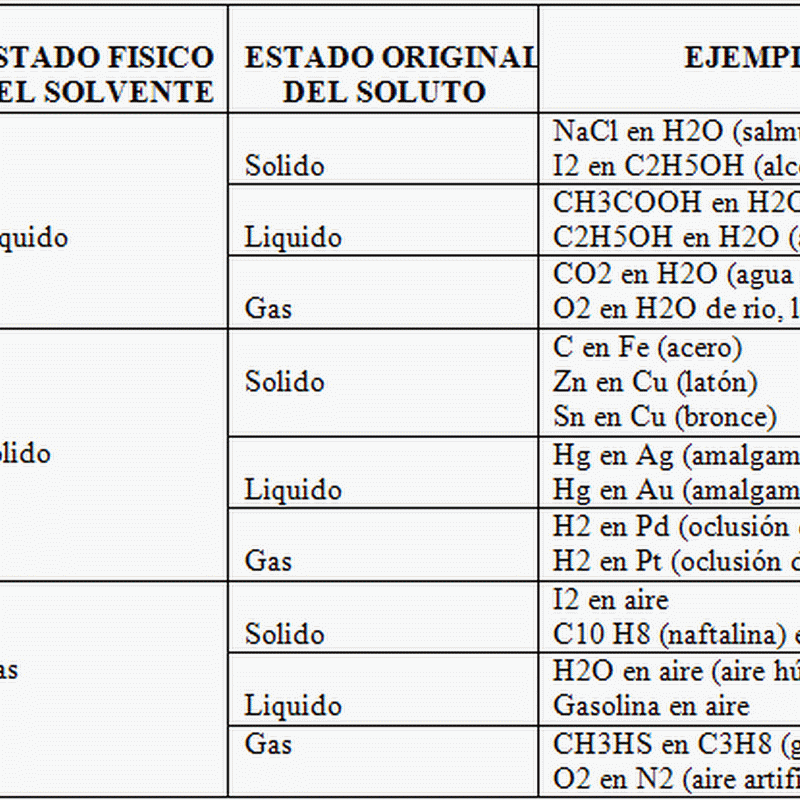 Tipos de soluciones según su estado físico - Quimica | Quimica Inorganica