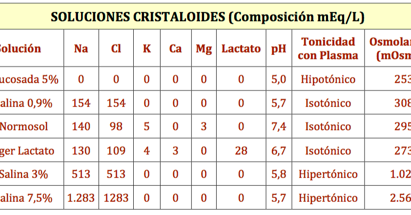 Composición de las soluciones intravenosas: Cristaloides (Glucosada, Salina, Hartmann). - Medicina mnemotecnias
