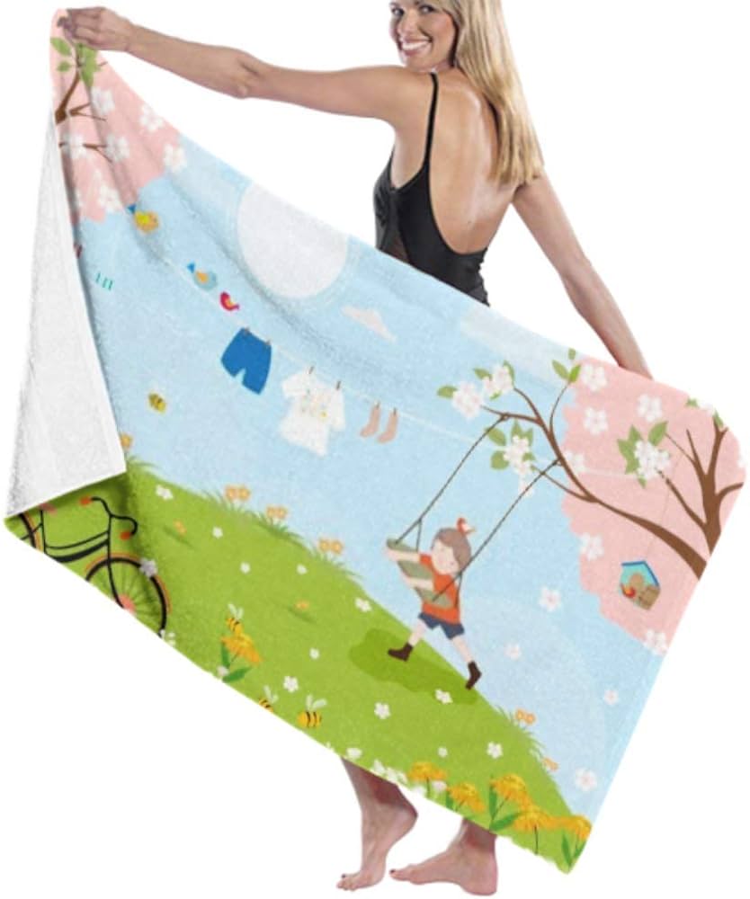 Toalla de playa de microfibra, lindo paisaje primaveral de dibujos animados Toallas de baño de bicicleta vintage Toallas de viaje ligeras de secado rápido Toalla de baño de playa ultra absorbente Toa :