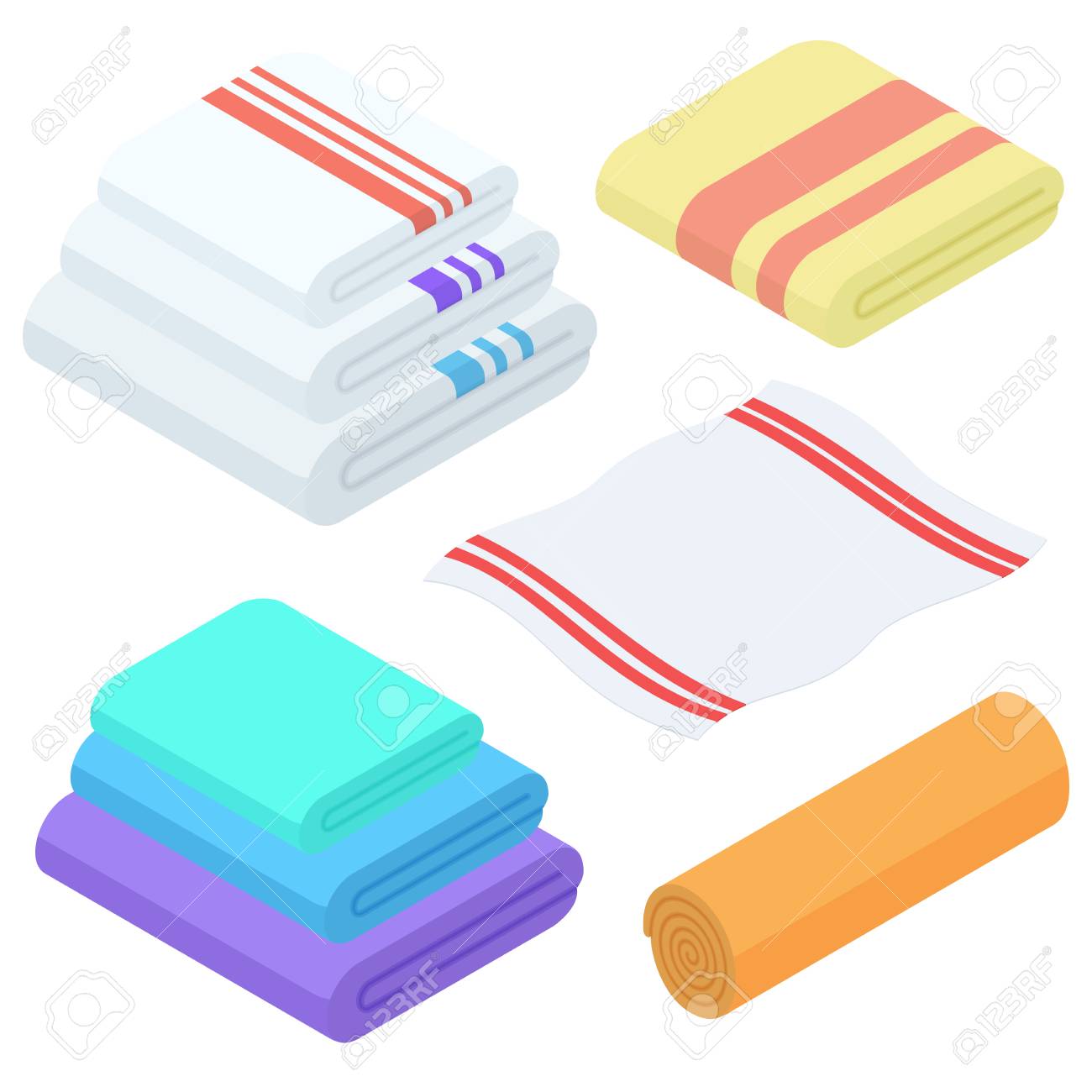 Conjunto De Vector De Toallas Isométrica De Dibujos Animados. Toalla Doblada De Tela Para Baño. Fotos, retratos, imágenes y fotografía de archivo libres de derecho. Image 90238963