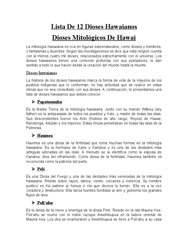 Lista de 12 Dioses Hawaianos | PDF | Hawai | Diosa