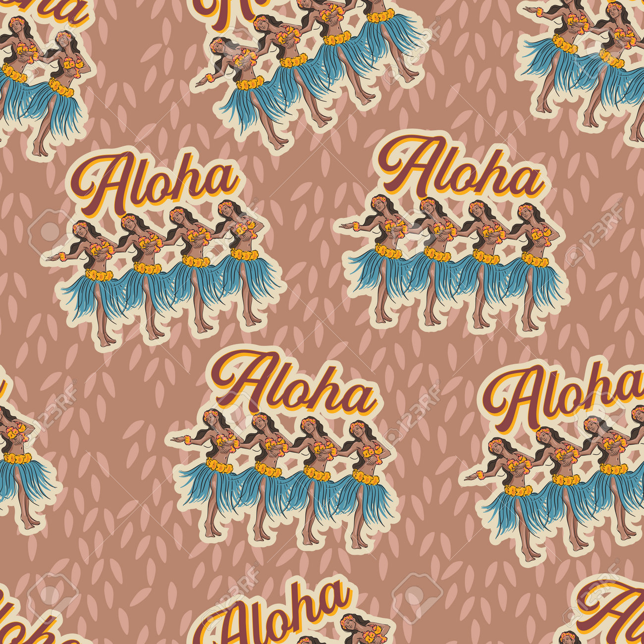 Hermosas Chicas Hawaianas Isla Aloha, Vibraciones De Playa Ilustración Vectorial De Patrones Sin Fisuras, Diseño Para Moda, Tela, Textil, Papel Pintado, Envoltura Y Todas Las Impresiones Ilustraciones svg, vectoriales, clip art vectorizado