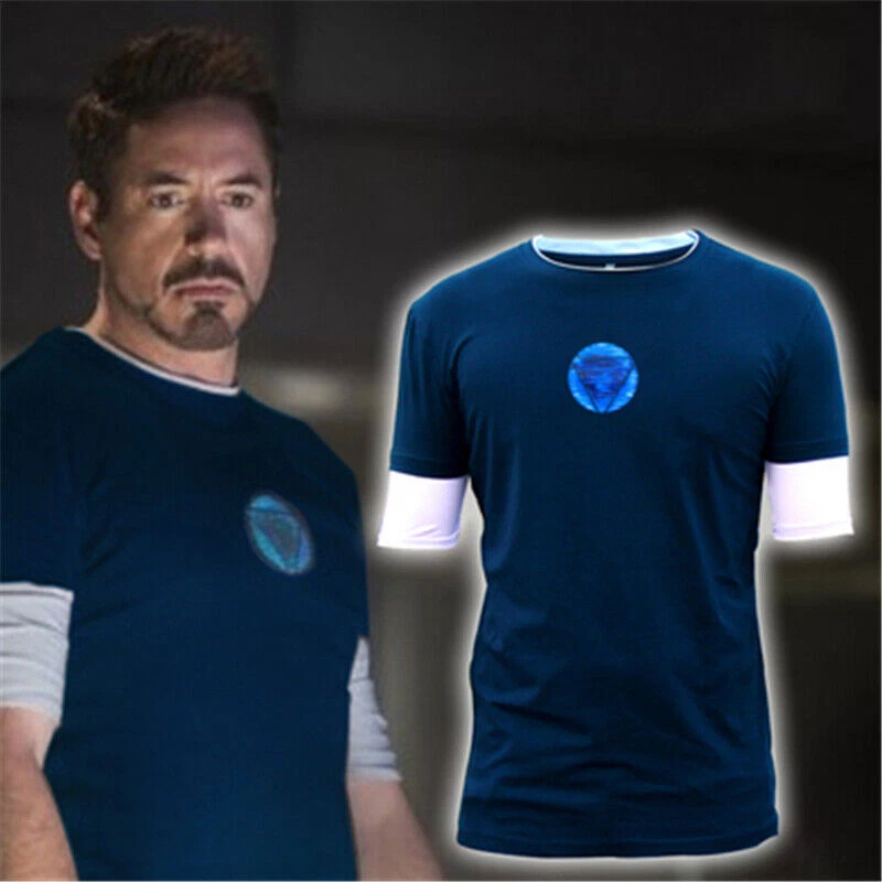 Iron Man 3 Tony Stark T-Shirt Light Up Luminous Arc Reactor Short/Long Sleeves | eBay