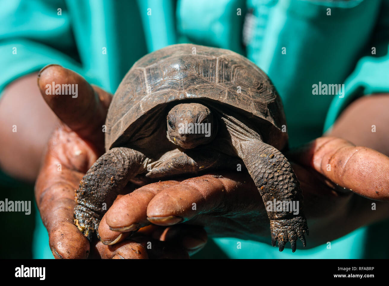 Baby Aldabra tortoise (Aldabrachelys gigantea) at the local tortoise nursery, Fregate Island Private, Seychelles, Indian Ocean, Africa Stock Photo - Alamy