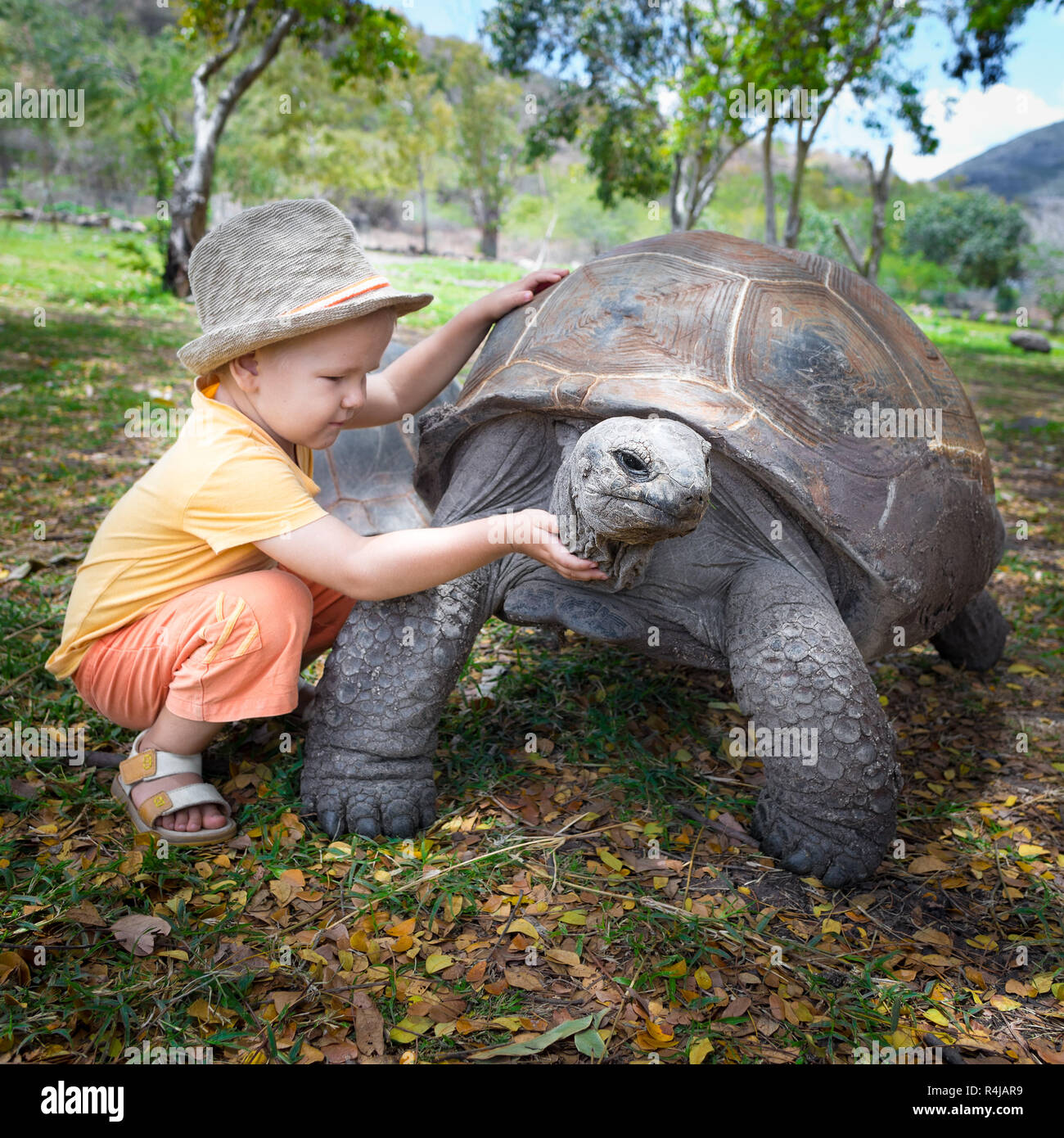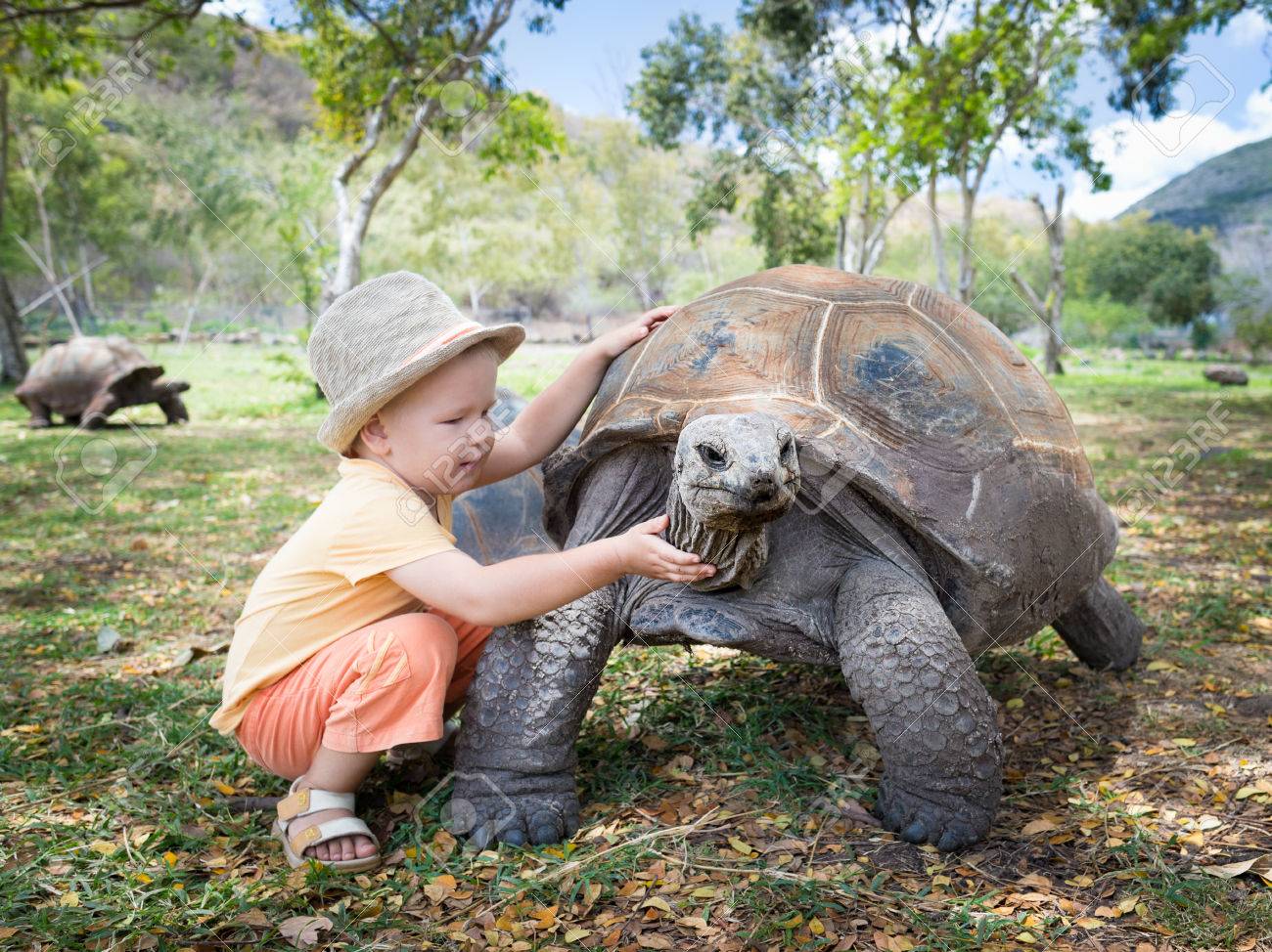 Tortuga Gigante Y Niño De Aldabra Foto de archivo - Imagen de famoso, animal: 81992776