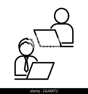 Icono de trabajo remoto. Dos personas trabajando en la computadora. Pictograma plano para web. Trazo de línea. Aislado sobre fondo blanco. Vector de contorno eps10. Comunidad en línea Fotografía de stock -