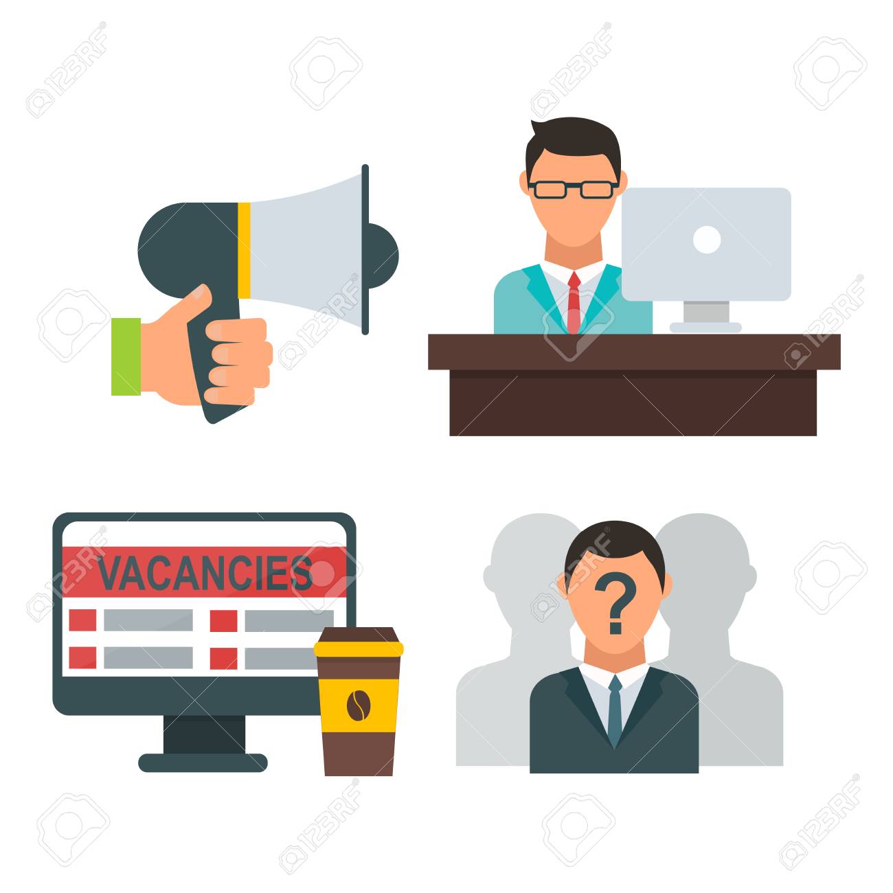 El Icono De La Búsqueda De Trabajo Del Vector Fijó Concepto De La Oficina De Computadora. Reclutamiento Humano Empleo Trabajo Búsqueda De Trabajo Iconos Team Meeting Manager. Los Iconos De La Búsqueda