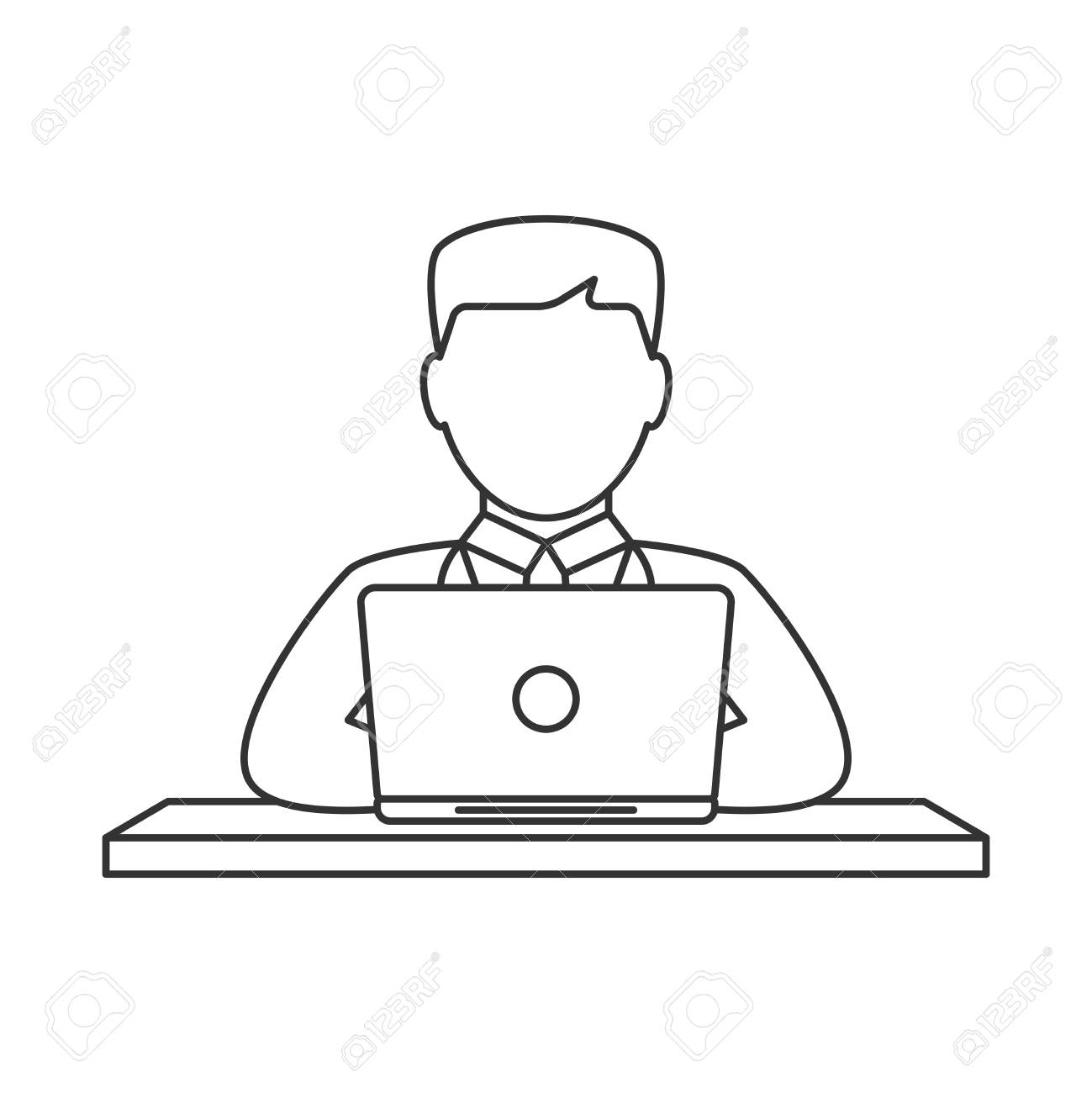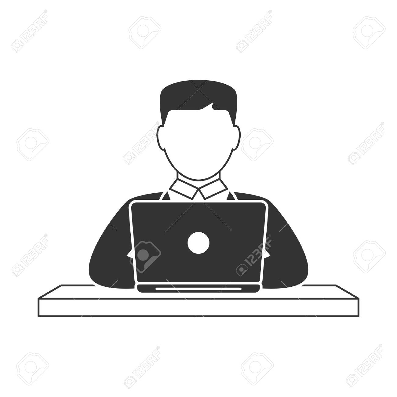 Hombre Que Trabaja En El Icono De La Computadora Portátil Ilustraciones svg, vectoriales, clip art vectorizado libre de derechos. Image 72200217